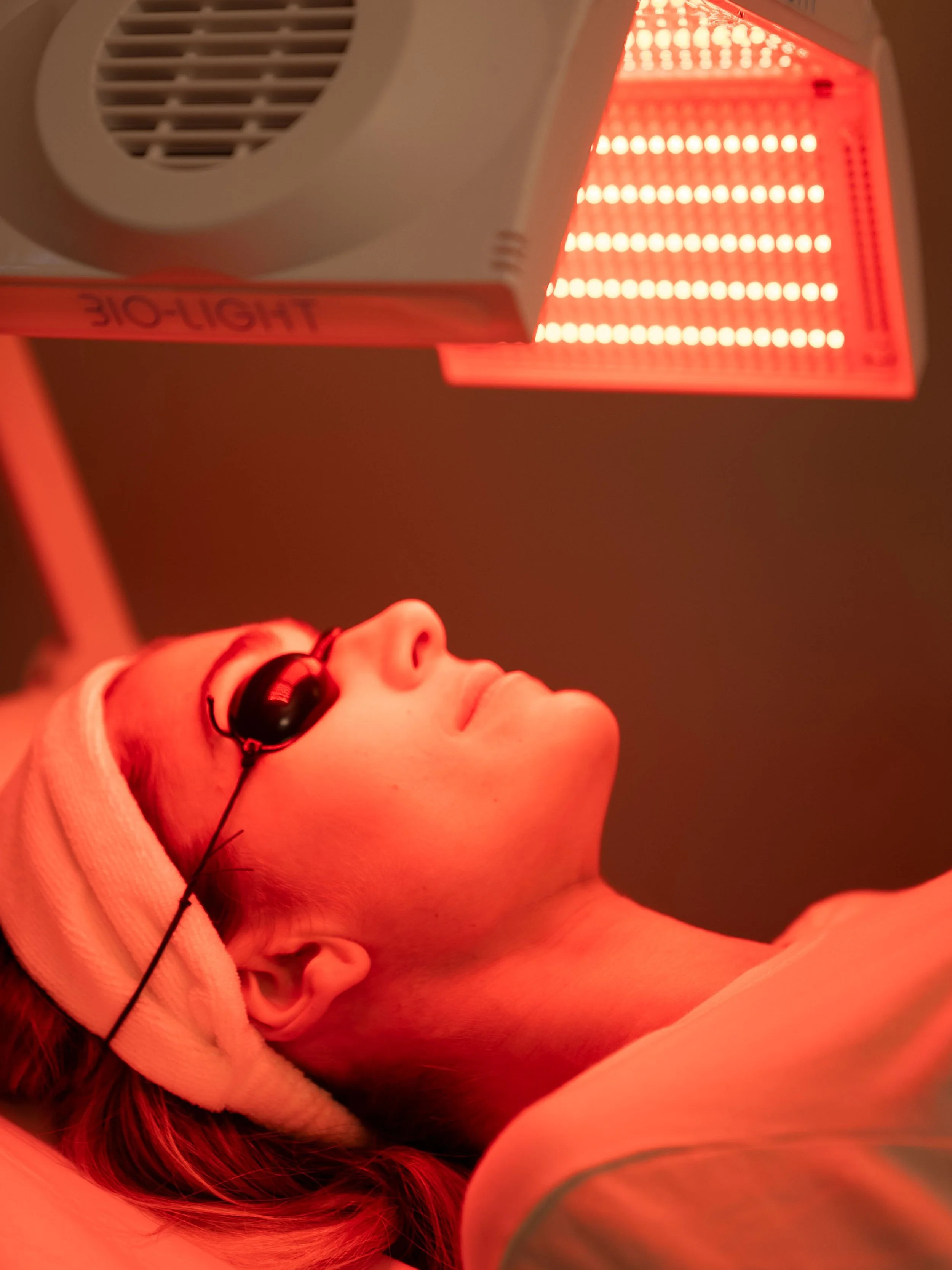 LED rouge : Apaisement de la peau, réduction des rougeurs et accélération du processus de récupération.